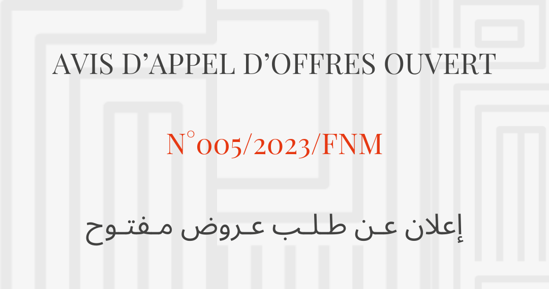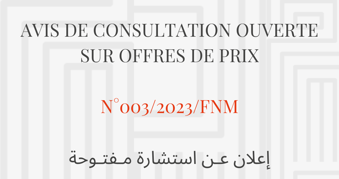 Le Mardi 29 Août 2023 à 11 heures, il sera procédé, à la salle des réunions de la Fondation Nationale des Musées sise à : 31, avenue Alaouyine, Quartier Hassan, Rabat à l’ouverture des plis relatifs à la consultation ouverte sur offres de prix relative aux travaux d’aménagement pour la mise en place d’un Centre National de Conservation et Restauration de Tapis