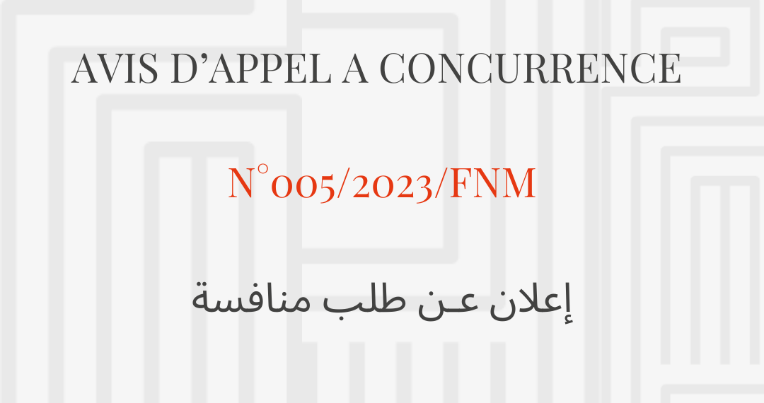 Le Mercredi 16 Août 2023 à 11 heures, il sera procédé, à la salle des réunions de la Fondation Nationale des Musées sise à : 31, avenue Alaouyine, Quartier Hassan, Rabat à l’ouverture des plis relative à l’appel d’offres ouvert sur offres de prix pour la gestion par concession de la Cafétéria du Musée du Football Marocain sis au siège de